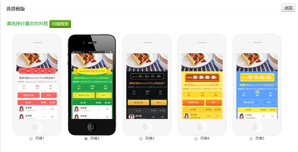 功能亮点:可检测助力数(指的是分享的点击数),根据助力数来排名次,商家可根据此来自定义活动的内容,比如:助力抢牛排,拼转发得iPhone之类的活动。