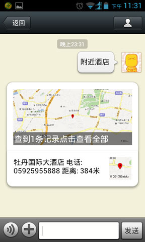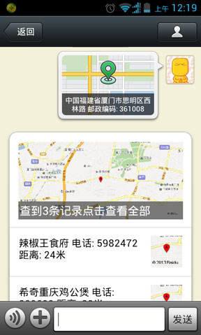 开启此功能,发送位置就回复你自定义的LBS数据根据你设置的标签,你还可以输入“附近+标签(关键词)”看查询结果,还可以输入"附近300米+标签(关键词)"看查询结果。