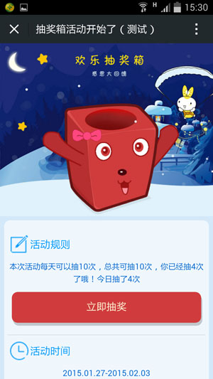 使用技巧:创建好抽奖箱引导用户分享到朋友圈可以有很好的传播效应。
